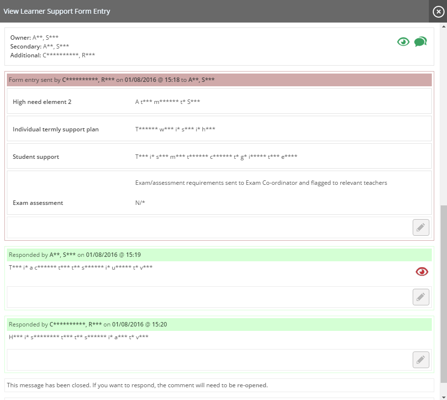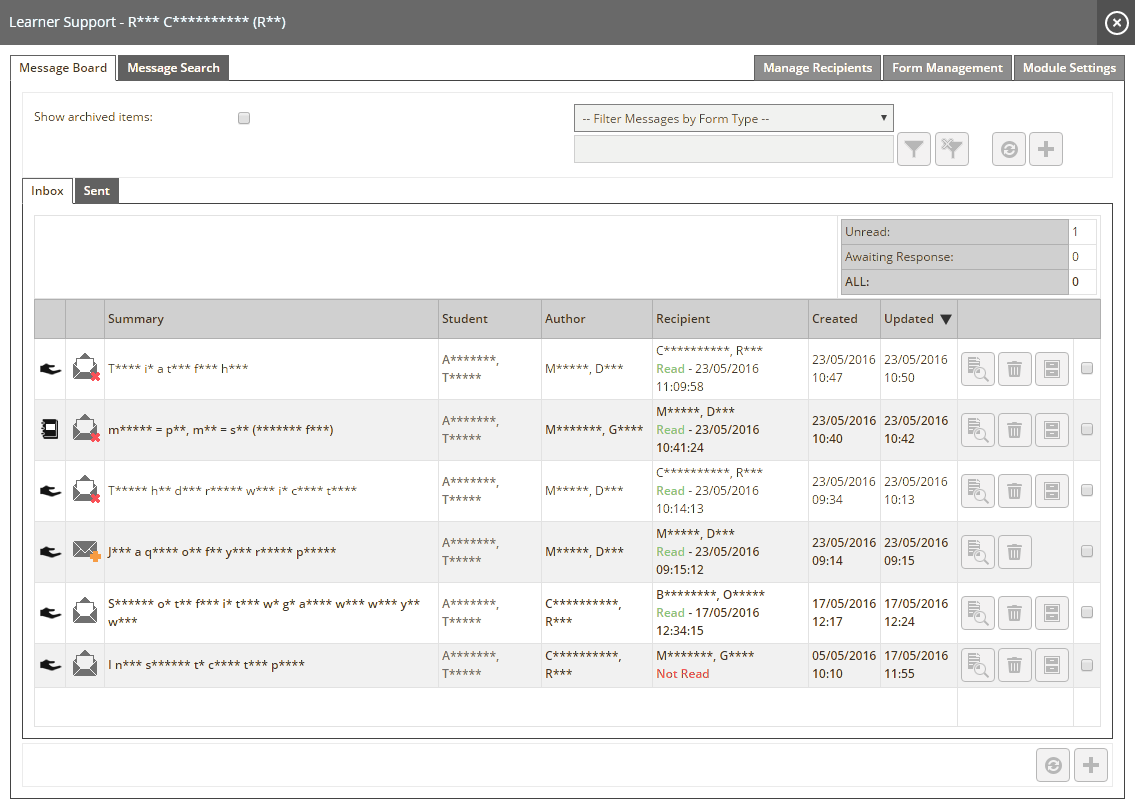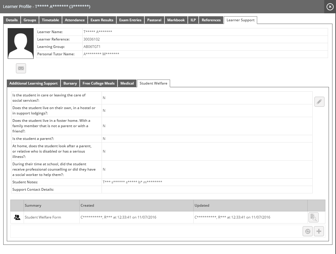 Core Modules Home / Core Modules / Learner Support DashboardMarkbookILPPastoralLearner SupportReferencesFeedbackMessagingReporting Dashboard Markbook ILP Pastoral Learner Support References Feedback Messaging Reporting Learner Support The Learner Support module is designed to record student support requirements, initial diagnostics assessment notes, free school / college meals and bursary entitlements, and medical information. Key Features Effective communication tool - replaces emails, paper, and bespoke systems Helps 'Safeguard' learners with a fully integrated system Ensures all additional learner support needs are sensitively recorded and the relevant members of staff can be easily informed The module provides granular level security controls ensuring that selected information is accessible to relevant staff members. The system provides auditable dynamic communication between learner support staff and the curriculum delivery teams increasing better tracking and reviewing of learning support.