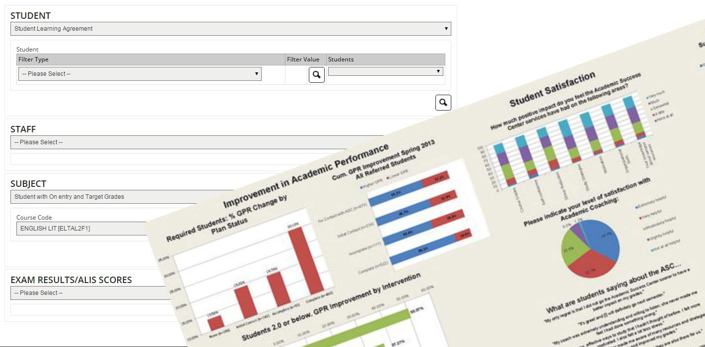 Core Modules Home / Core Modules / Reporting DashboardMarkbookILPPastoralLearner SupportReferencesFeedbackMessagingReporting Dashboard Markbook ILP Pastoral Learner Support References Feedback Messaging Reporting Reporting The Reporting module has been created to provide a route into any of the core dashboard reports provided as part of the e-ST suite of products, or to provide a seamless integration into any custom reporting that you may set up through third party reporting software such as Microsoft SQL Server Reporting Services or off-the-shelf products like Dynistics. Key Features Easy access to 'contextual' reports Provides real-time information for SMT, Middle Managers and Teachers Integrates with MIS Reporting and external sources of information Re-usable and exportable custom reports The reports interface provides role specific navigation and menus to suit the needs of the specific user, plus familiar searching and filtering options that can be fed into the report without the need for further user interaction outside of the dashboard. Reports can combine information from all e-ST modules along with information held elsewhere within college MIS systems or other sources of data that might be required. All reports are generated and presented in a seamless manner through the dashboard, as well as providing a way to embed them as panels on the main dashboard itself using graphical representations of key performance indicators (KPIs) at a college or course level. An analysis tool allows for the investigation and summarisation of data from all areas of e-ST, with a variety of grouping, sorting, and filtering options, in both numeric and graphical display modes. These customised reports can then be exported for offline use or have the configuration saved for quick and easy re-use, both by the original creator and, optionally, by other users of the dashboard.